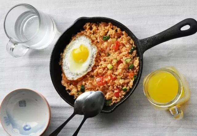 说到炒饭,不管是用籼米或蓬莱米煮出的饭,一定得用冷饭,有人还更喜欢隔夜(但要冷藏适当)的冷饭,这样的饭松而不黏(也因此籼米天生较适合炒饭,广东人炒饭好吃也跟用的是东南亚品种的香米有关),炒出来的饭才能粒粒分明,不会纠结软烂成一堆;也因此炒饭切忌用锅铲压挤,最好是用长筷搅一下,再用手腕之力把锅子上下抖动,让米粒轻松地完全加热。炒饭可用冷饭,但煮饭却绝不可用冷饭回蒸(可以回蒸的米只宜糯米,这也是为什么粽子要用糯米了),因为一般米饭蒸煮后会定型,加水回蒸根本蒸不透米心,米粒吃来里外口感不均,这正是生米煮成熟饭的“熟”字道理。