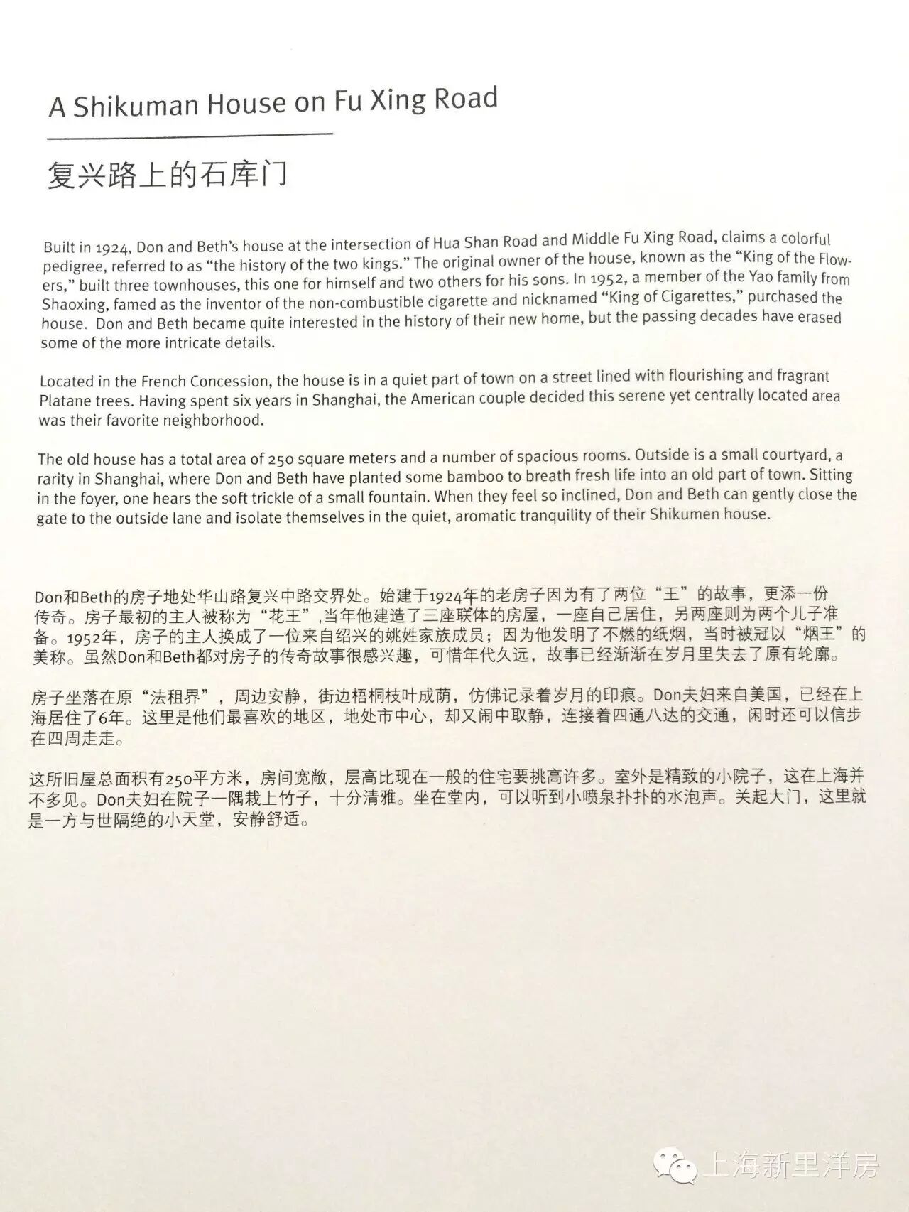看了一套复兴西路上的老洋房,