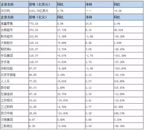 11月18日,沃尔玛公布了第三季度业绩,公司第三季度营收1181.79亿美元,同比增长0.7%,净利润同比下降8.2%。此外,卜蜂莲花昨晚发出盈利预警,预计公司2016年全年将继续亏损,亏损额较比去年全年的1810万元还将有所扩大。