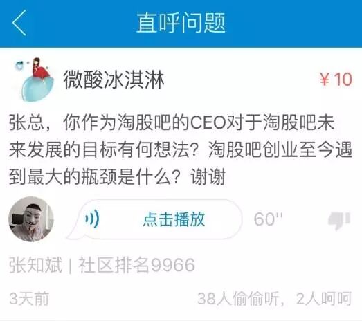 淘股吧app新上线的直呼功能刚推出一周时间,已引发淘县网友纷纷向自己崇拜的偶像,大神,达人发起各种直呼问题,其中不乏投资知识问答、趋势投资经验分享、女神悄悄话真情流露、达人一招鲜的投资小技巧,更惊喜的是竟然还有达人天籁之音的歌声...各式各样直呼声
