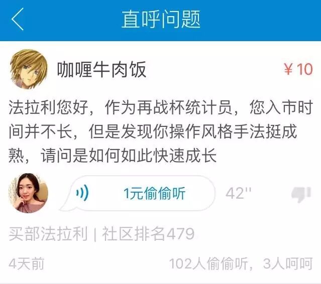 不得不说,这102人其中一部分人(包括小编)是冲着听听法拉利mm的声音去的,听了之后,不仅感觉非常养耳,还很涨姿势,而且,法拉利mm很乐意传道受业解惑也,所以大家赶紧去直呼她吧~