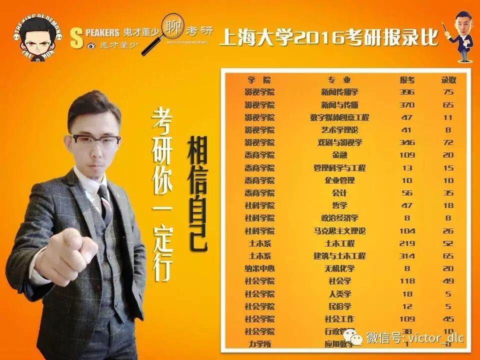 鬼才董少的话题#鬼才董少聊考研# 之院校报录比,今晚我们来分享一所院校“上海大学”。希望童鞋们多多转发评论。也不枉董老师天天分享干货付出的努力。