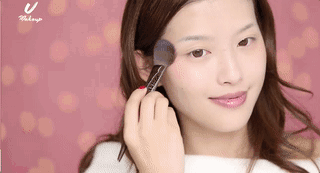 从苹果肌淡淡擦一点,再横着扫到太阳穴附近的位置!