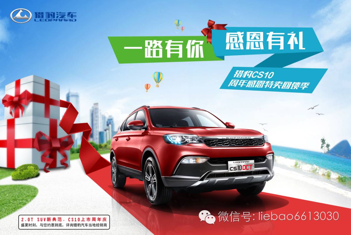 这一年,猎豹CS10为梦想交出了一份令人满意的答卷。回眸一年前的4月20日,猎豹CS10在上海国际车展正式上市。作为猎豹汽车重获生产资质后的首款SUV,CS10承载着重新出发的猎豹人多少的心血和希冀!苦心人,天不负。2015年,猎豹CS10终于一炮而红!时尚的外型、强劲的动力、超大的空间,市场黑马的它每月在汽车热销榜上的排名都不断刷新,并迅速跻身国内热销SUV车型行列!