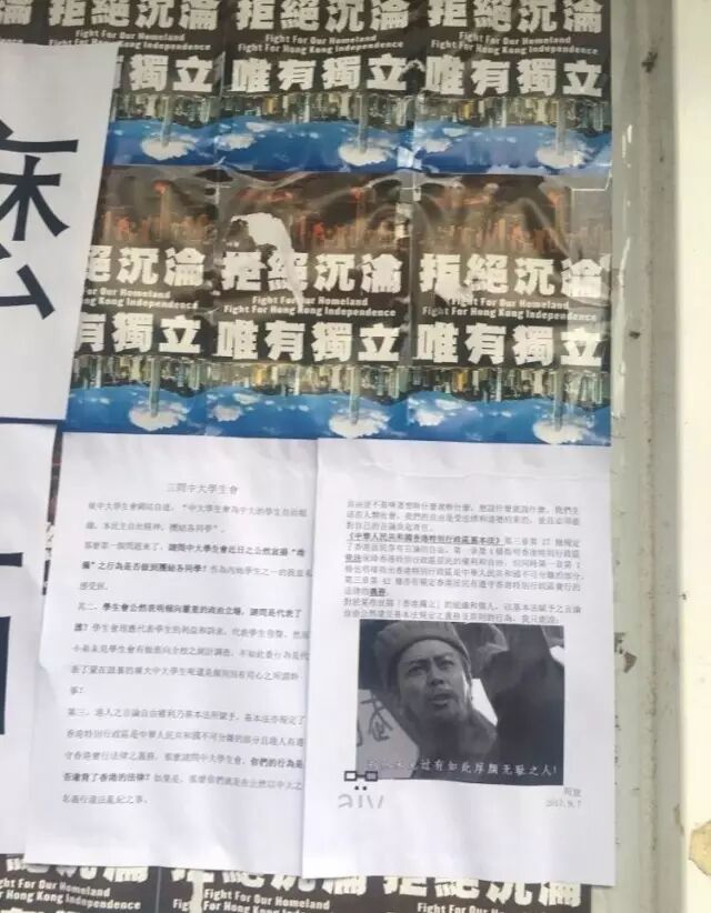 校园出现了许多带有“港独”字眼的海报和横幅。