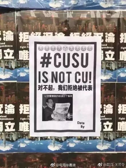 斥港中大学生会张贴“港独”海报的所作所为。