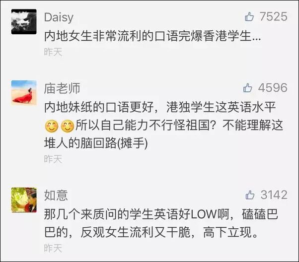 反而用流利英语与“港独”激辩民主,