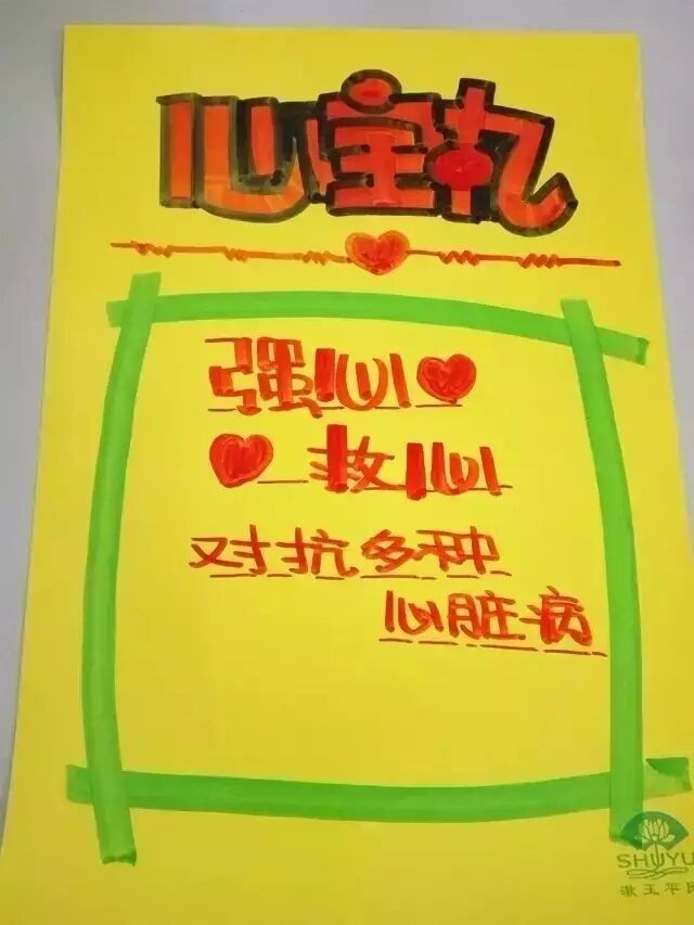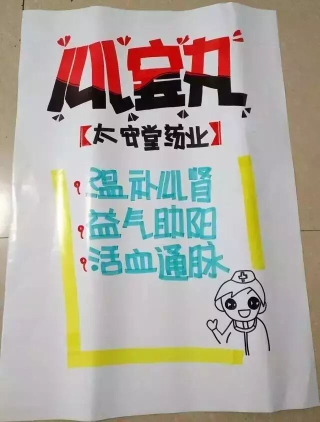 海报纸的下1/3处写产品的宣传语,用6-15个字紧扣产品主症,文字下方或者旁边配有卡通形象会更佳。