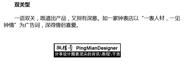利用反语,巧妙地道出产品特色,往往给人印象更加深刻。如:牙刷广告词:“一毛不拔”;打字广告:“不打不相识 ”。