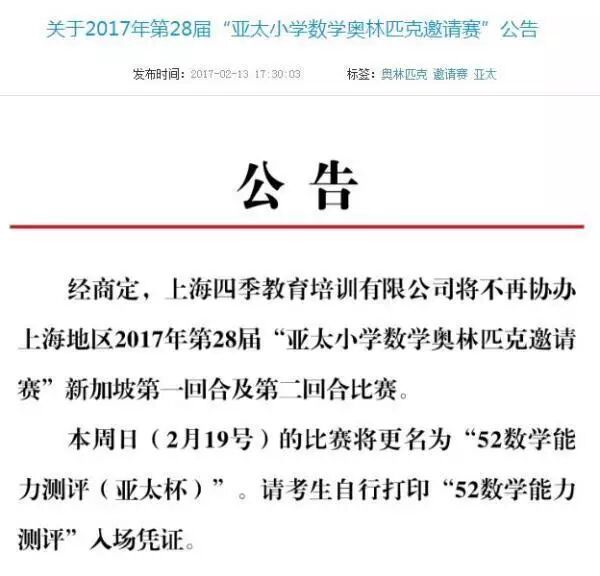 周日的“亚太杯”比赛将更名为“52数学能力测评”。