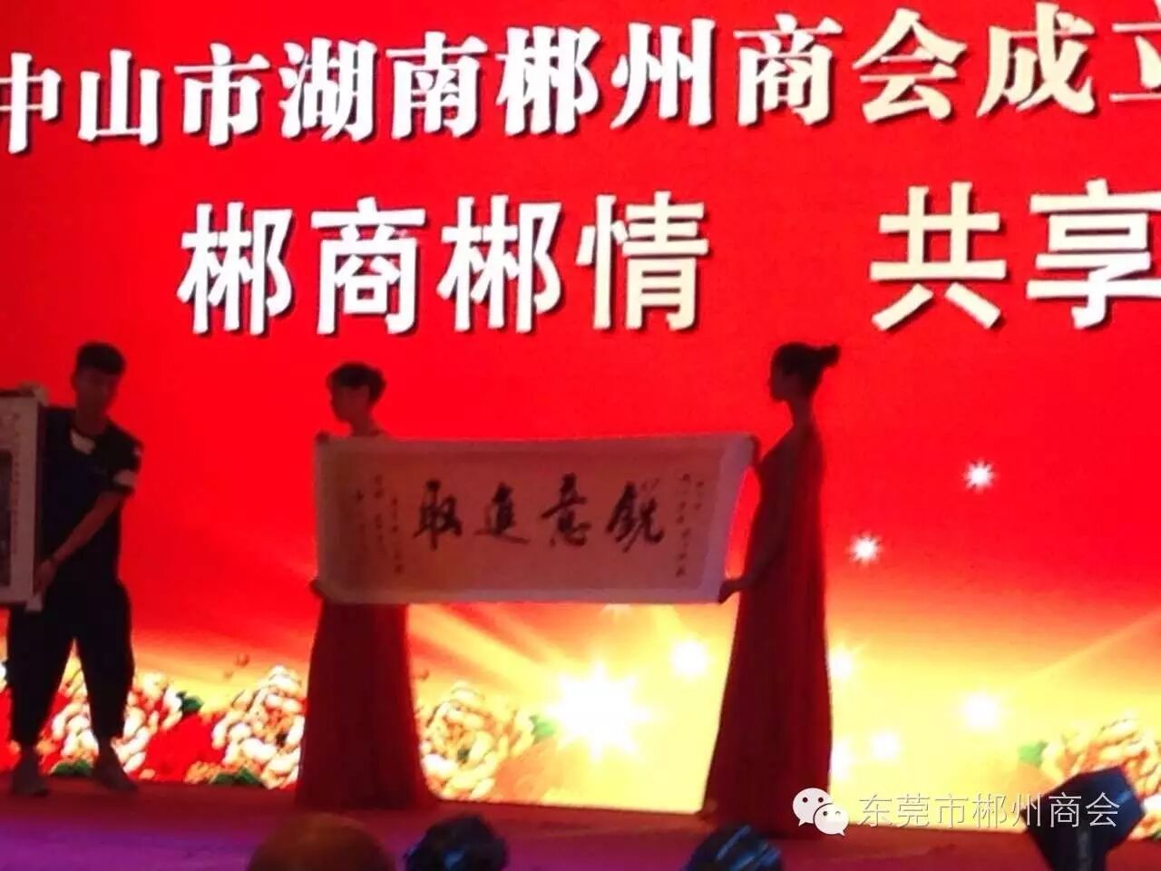 东莞市湖南郴州商会赠字画“锐意进取”一副作为中山市湖南郴州商会成立贺礼