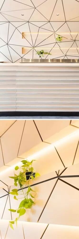Biasol’s Little Hugh咖啡店设计是三角形的探索,数字建模的几何形状通过数控加工制造,确保每个面板无缝连接在一起。