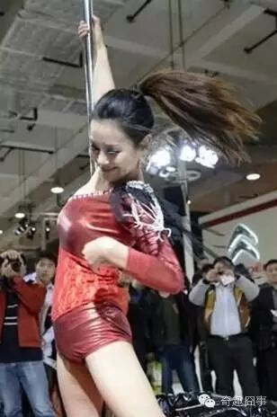 2015年6月4日,上海,某展会举行,一名钢管舞者激情表演钢管秀,高难度动作频频,引众人围观。