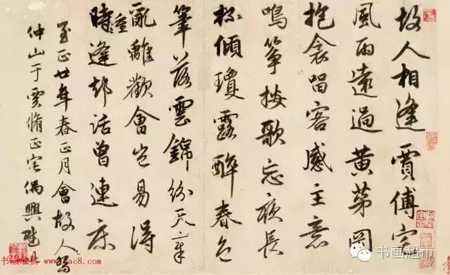元代俞和53岁书法作品《云锦帖》,26×41.6cm,至正廿年(1360)书,上海道明2010秋拍,成交价246.4万元。 俞和能诗,善书,书法酷似赵孟俯,好事者易其款以赵氏,时人真假莫能辨。帖中所提及之乔仲山,为元代著名收藏家,与鲜于枢等交好。