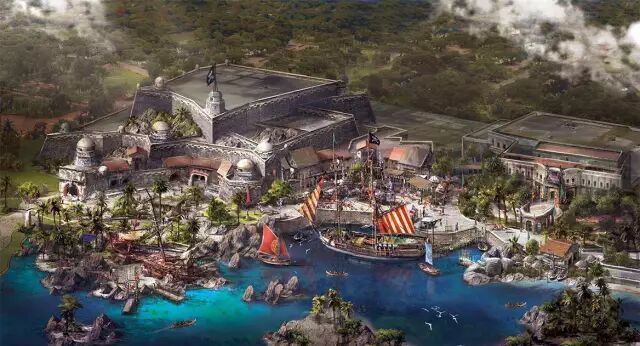 作为全球迪士尼乐园中第一个以海盗为主题的园区,“宝藏湾”是专门为上海迪士尼乐园量身打造的。在整个园区中,室内乘船漂流游乐项目“加勒比海盗,沉落宝藏之战”,将以三块巨型多媒体穹顶、剧院级的布景和復杂的光影效果,让游客们畅游海面甚至潜入海底展开一场生动的航海大冒险,不仅可以遇到“海盗”“美人鱼”、甚至“北海巨妖”,还能身临其境地开火对战。
