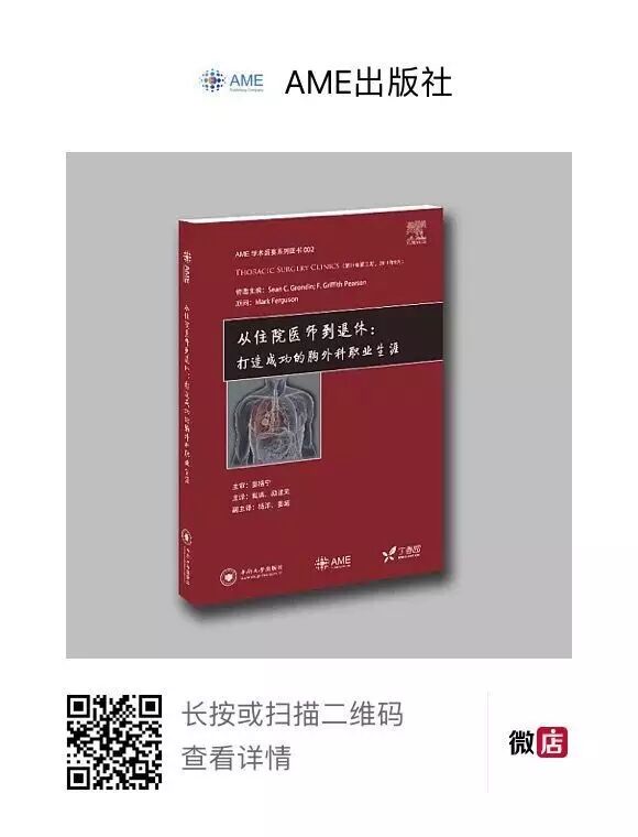 我们即将为您介绍的就是AME学术盛宴系列图书002《从住院医师到退休:打造成功的胸外科职业生涯》。该书由国内知名胸外科专家姜格宁教授主审,AME与一众优秀编委及作者团队共同打造。每个胸外科医生都会有一段从住院医生开始的经历,追求成功是他们共同的愿景。每个人对成功的定义不尽相同,不妨听听看,来自你前方渡河中或者已经成功抵达彼岸的长者的经验分享。也许你正在经历的就是他们当年所经历的,你迷茫着的正是他们迷茫并且顺利跨越的那道坎。一言以蔽之,希望这本书能为医学生、住院医师、专科医师和主治医师在通往胸外科职业生涯成功之路上带来一丝启发和辅助。