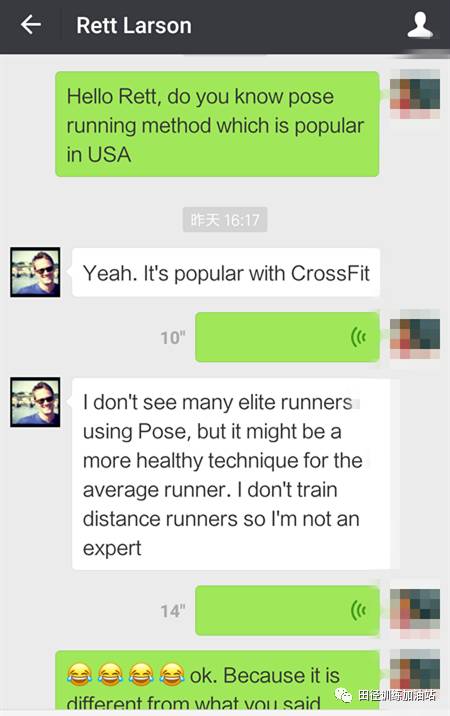 第二位是Rett Larson,目前就职于中国上海的JUZPLAY运动训练表现中心。之前服务过我国的多支省队、国家队。2015-2016年负责中国女排的体能训练。由于姿势跑步法主张着地时候使下肢借由自身体重,轻松地着地,而非传统跑步技术中通过股四头肌、腘绳肌、臀肌的协同收缩,以主动蹬伸的方式着地。但是Rett在平时的上课中一直提倡运动员在着地的时候要迅猛有力(landing powerfully),因此我也问了下他对于姿势跑步法的看法。