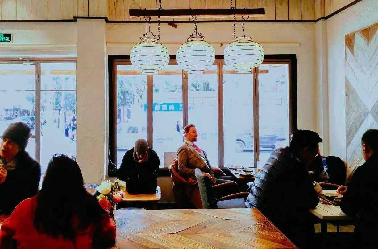 Situated on 698 Yuyuan Lu, Brut Cake Café bathes in the natural sunlight that permeates through the tall glass windows. The milky white and oaky wood color, together with the unadorned concrete floor, set an unpretentious tone for the restaurant. Some love sitting on the antique chairs, chatting, taking photos, or reading. Some prefer sharing the communal table to savor the juicy chicken and crispy waffle, while sipping a cup of single origin coffee. There is no extravagant decoration.We present a cozy ambience in the most simplistic way. The wall of mugs with ahundred hand-drawn faces will surely make you smile from the heart.