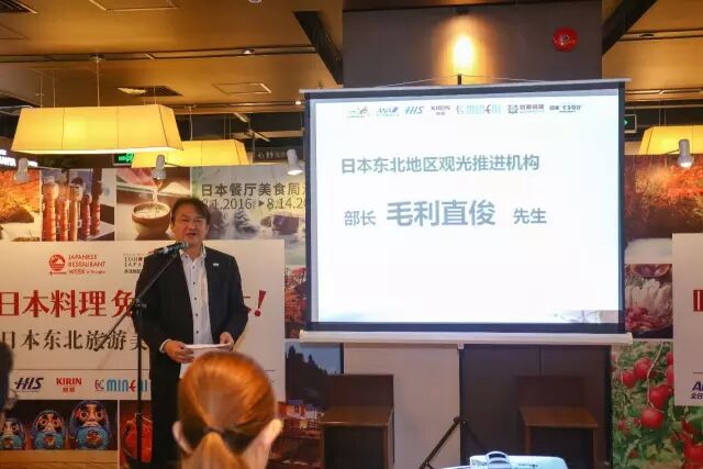 首先是日本东北地区观光推进机构毛利直俊先生致辞,介绍日本东北的特色及魅力。他认为说到日本东北一定要说的是温泉和美食,希望能把日本东北魅力传达给中国的消费者,非常欢迎消费者要到日本东北地区体美食美景验。