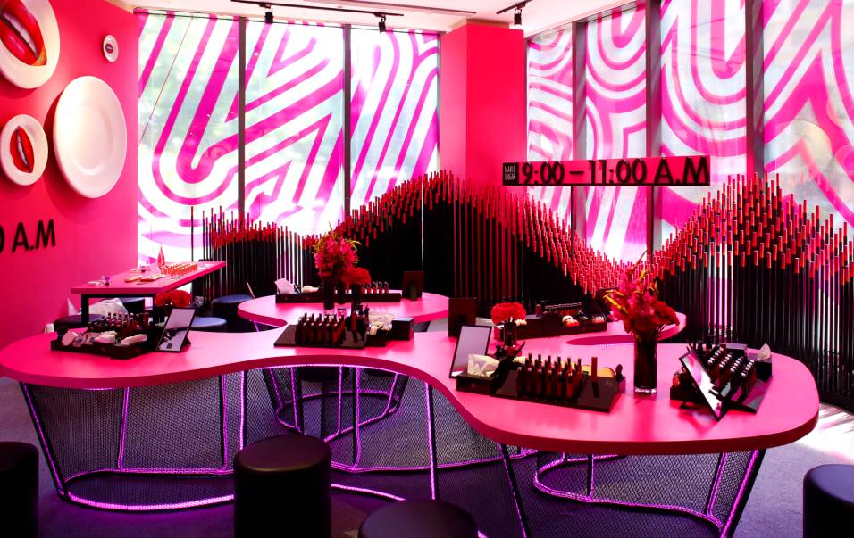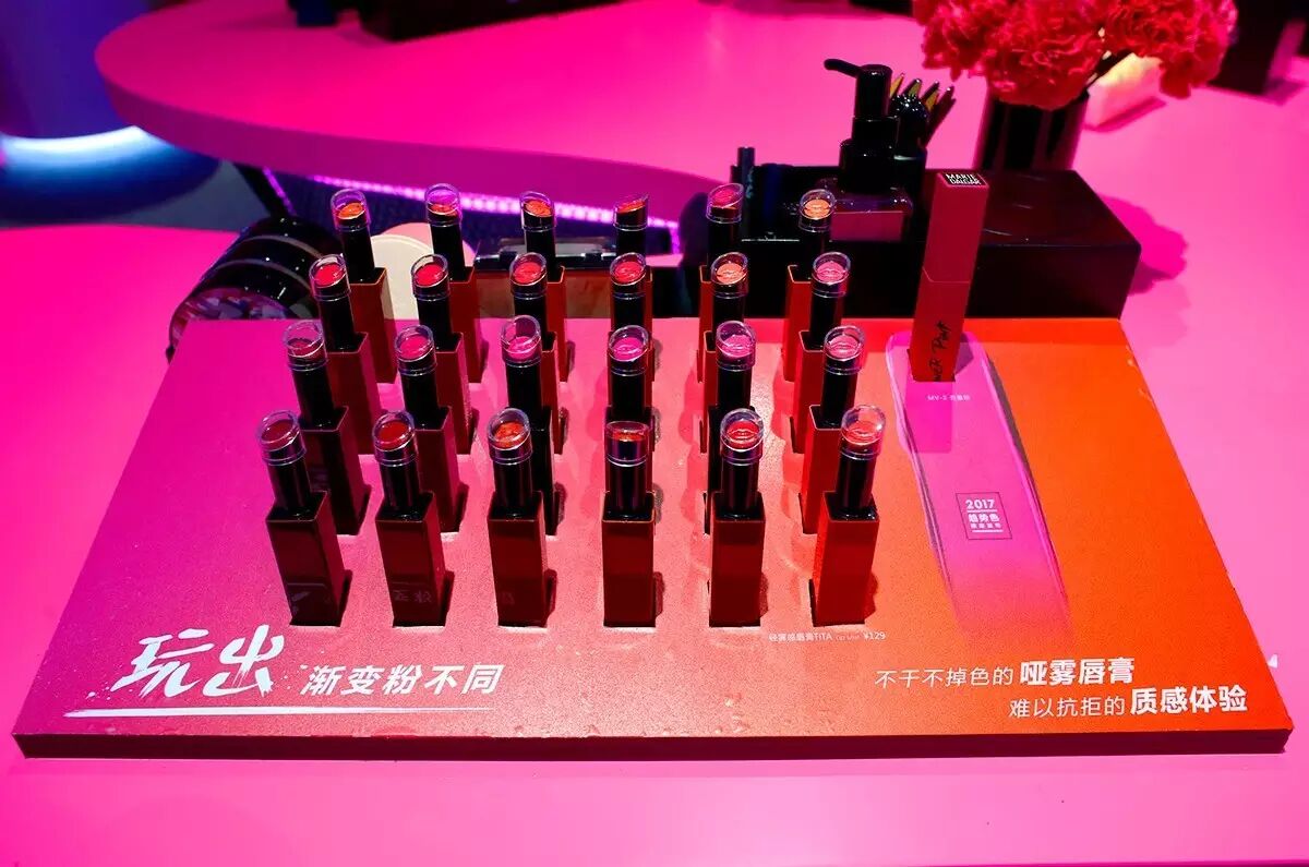 听说,用色彩的餐盘可以刺激人的食欲,那么满墙的力量粉唇妆盘会不会激起你的扮美欲?