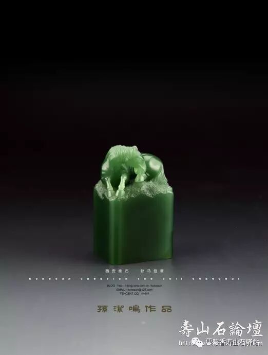 一个真正的艺术家一定不会满足于自我的重复,在鹿钮印章取得成功后,相继又创作了卧马等题材,随后孙洁鸣的目光就转向了他处。在今天看来,他对待自己作品的态度与两年前相比又有新的变化。特别是这枚鹿钮印章,他说如果他现在再雕刻的话,会将重点展现拙朴的风格,那种感觉就是博物馆里的那枚犀角鹿钮印所呈现的。如果缺少了这种拙朴感,那么鹿钮呈现出来的韵味是与西方艺术接近的,中国的味道就过于浅淡。而鹿钮之后,他的创作就始终围绕着传统的元素,一直在试图表达这种拙朴的味道。