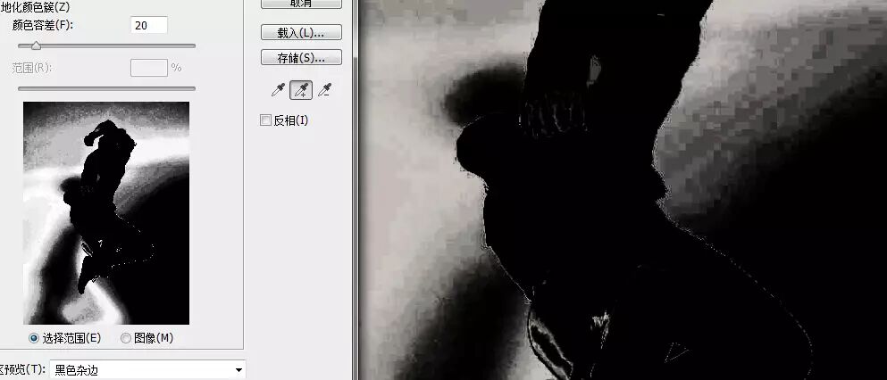 用加号吸管工具吸取杂色。这里我习惯把选区预览改成”黑色杂边“。看的舒服直观一些。