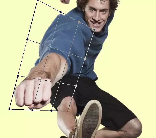 开始夸张的放大手臂,通过变形,缩放,透视等工具来操作。这里还要记得调整一下位置,让它尽量的符合一定的透视。