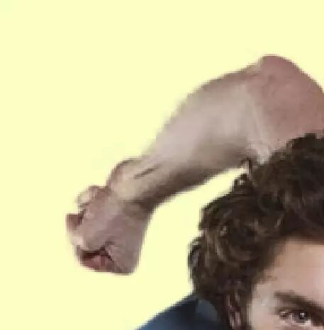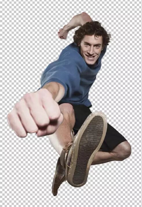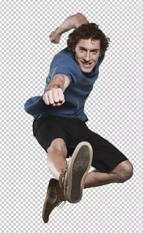 接下来就是来放大这个人物的某些局部,来夸张他。我选择了他的前面的那只手,还有脚。不急,我们先对手抠图,先把手上拳头抠出,然后在抠出,抠出后,分别把他们转变成智能对象。