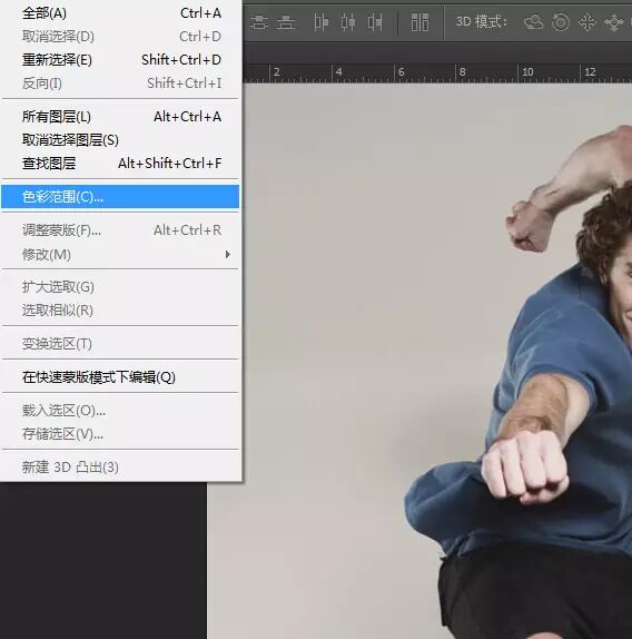 打开“男孩‘素材,复制一层人物,在这两层中间新建一个黄色的填充层。咱们以他的幅面来进行制作。这里人物的抠图部分,我们直接用“色彩范围”命令