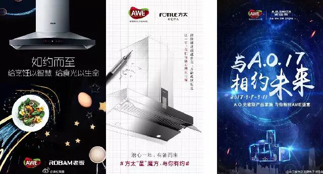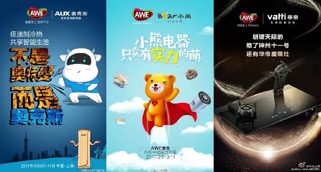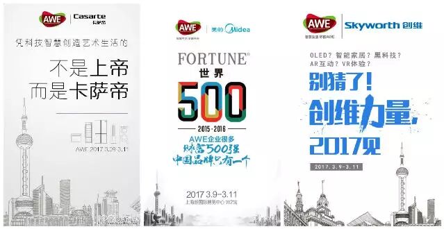 从企业海报动向频频来看,加速品牌影响力扩大成为了家电企业转型蜕变“重拳”。像卡萨帝“创造艺术生活的不是上帝,而是卡萨帝”、美的“AWE企业很多,财富500中国品牌只有一个”海报用词多了一份霸气和自信,气势上先拔头筹。可以说海报的背后是家电企业品牌实力、研发实力的迸发。