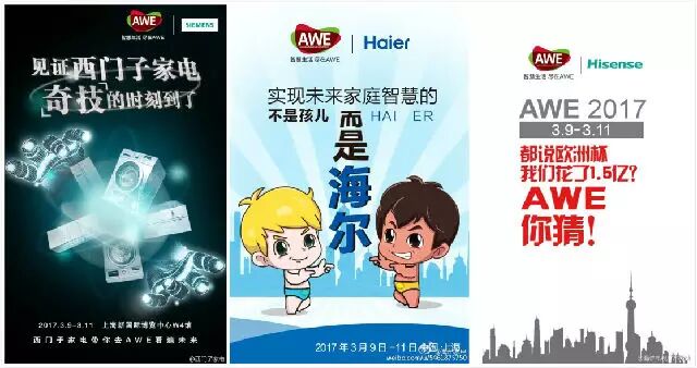 无论是海信“都说欧洲杯我们花了1.5亿?AWE你猜!”版的霸气凌然,还是西门子“见证‘奇技’的时刻到了”版的文艺凛冽,抑或是海尔“实现未来家庭智慧的不是孩儿,而是海尔”版的诙谐幽默,都让人过目不忘。