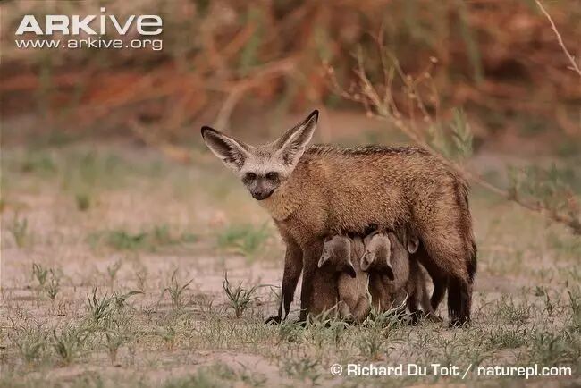 除此之外,还有些狐狸并不是这个属,亲缘关系更远一些,例如同样也长着大耳朵的大耳狐Otocyon megalotis,它们生活在非洲东部和南部的稀树草原。