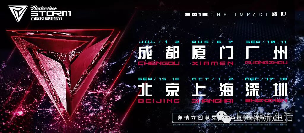 还有国内每年一度的电音圈盛事——百威电音风暴节重装上阵,今年的STORM更将落户全国6大城市↓↓