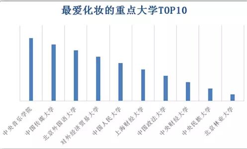 而在“最爱化妆的重点大学TOP10”中,中央音乐学院和中国传媒大学仍是霸占前二,清华北大已跌出前十。据悉,中央音乐学院人均每年网上购买化妆品222元。