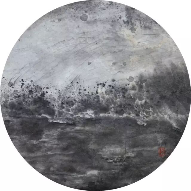 ▲ 遗忘之海 176 纸本水墨 直径23.7cm 2014年