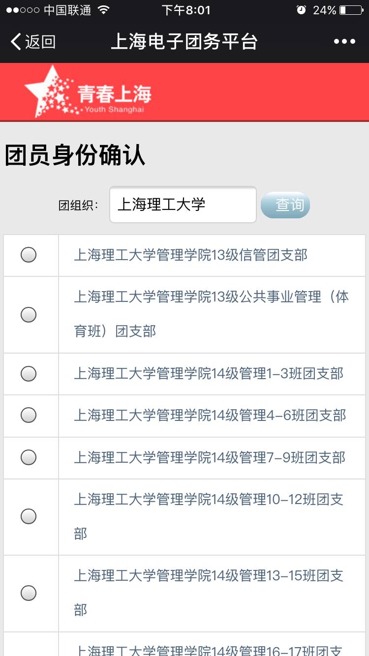在团组织关键字搜索栏输入关键词“上海理工大学”