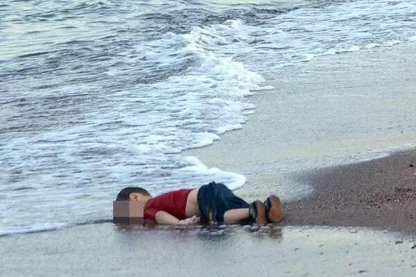 2015年9月,叙利亚小难民艾兰随家人偷渡欧洲,遭遇大浪,不幸翻船,小身躯被冲上海滩。