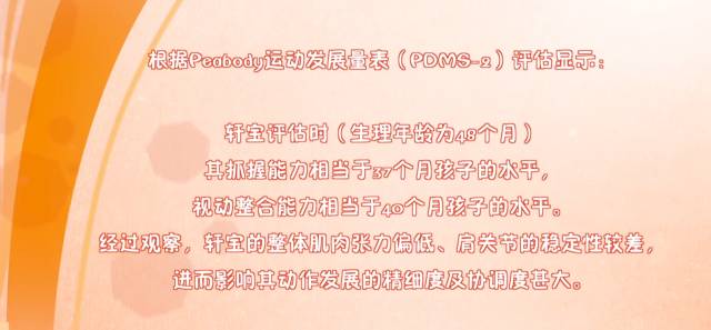 而在精细动作方面,轩宝的整体肌张力偏低,肩关节的稳定性较差。