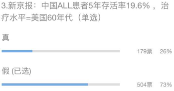 实际上中国急性淋巴细胞白血病(ALL)患者的存活数据没那么难看,而且新京报亦没有提供数据出处。肿瘤学领域颇有影响力的医学期刊《柳叶刀肿瘤学》2013年一篇论文综述了中国的相关研究,发现中国的ALL五年生存率在77.4%~82.6%之间。就这个病种,中国与发达国家的差距不大。另外急性淋巴细胞性白血病的主要治疗方法还是化疗,目前免疫疗法尚不成熟,仍在临床试验中。