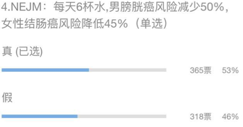 世界上最权威的医学杂志之一《新英格兰医学杂志》研究表明,每天喝6杯水(每杯240克)的男性,患膀胱癌风险将减少一半,女性患结肠癌风险将降低45%。