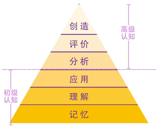 中国学布鲁姆学了整整30年,所有以前的教案全部是按照他的方法来做,回想一下所有的老师进教室第一个先是复习旧知识,引用新知识,然后等我们课程上完了布置作业,这就是布鲁姆讲的“应用”。课程结束“应用”达成,接下来就该考虑往上怎么走的问题。